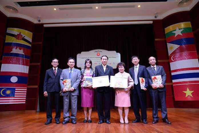 กรุงเทพฯ – 17 กุมภาพันธ์ 2558 – นายสมบูรณ์ เมฆไพบูลย์วัฒนา ผู้ช่วยรัฐมนตรีว่าการกระทรวงเทคโนโลยีสารสนเทศและการสื่อสาร (ไอซีที) (กลาง) พร้อมด้วยนายปิยะวัตร์ มหาเปารยะ รองกรรมการผู้จัดการใหญ่ (อาวุโส) รักษาการในตำแหน่งกรรมการผู้จัดการใหญ่ (ซ้าย) ร่วมประกาศผลการประกวดภาพต้นแบบแสตมป์และตราประทับที่ใช้ร่วมกันทั้ง 10 ประเทศ เมื่อเปิดประชาคมอาเซียน โดยประเทศที่ชนะเลิศการประกวด ได้แก่ ประเทศเวียดนาม ทั้งนี้ แสตมป์ชุดดังกล่าว กำหนดวันแรกจำหน่ายในวันที่ 8 สิงหาคม 2558 อย่างไรก็ตาม งานประกาศผลดังกล่าวจัดขึ้นเมื่อเร็วๆ นี้ ณ ห้องไปรษณีย์ฤดีสราญ ชั้น 3 อาคารไปรษณีย์กลาง บางรัก กรุงเทพฯ