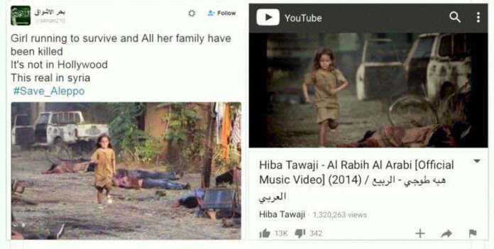 (แปลทวิตเตอร์ : ข่าวอุปโลกน์ เรื่องราวการสังหารหมู่พลเรือนในอเลปโปไม่มีหลักฐานใดเลย พวกเขาใช้ภาพปลอมจากจากมิวสิควิดีโอและเหตุการณ์ระเบิดในปากีสถาน)
