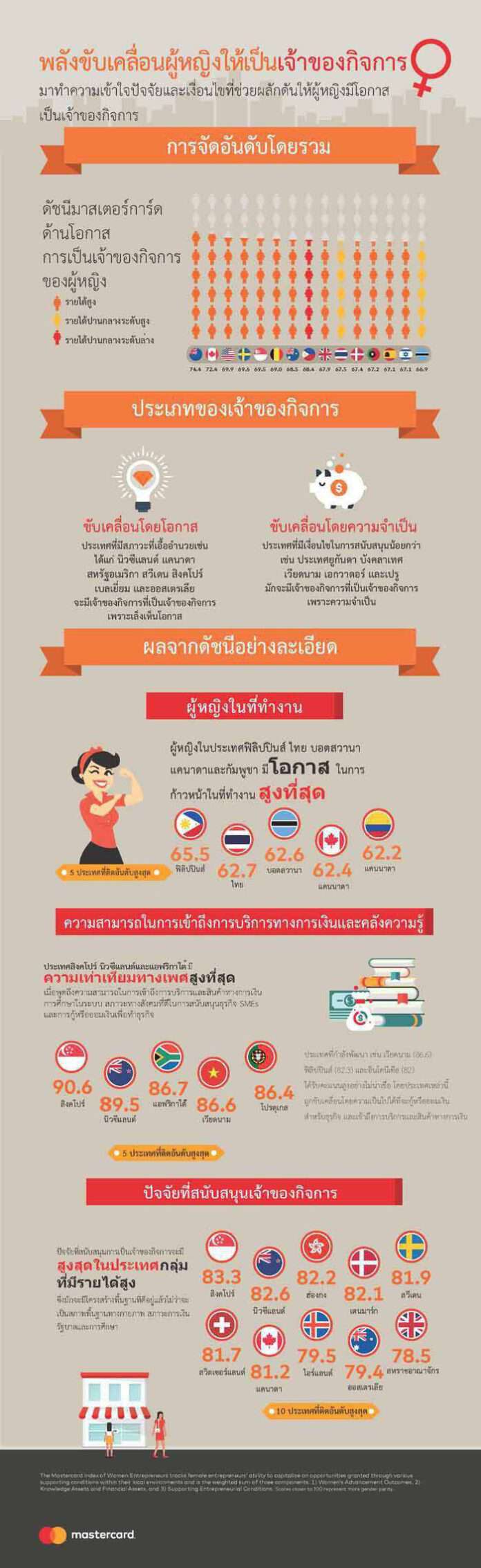 ดัชนีผู้ประกอบการสตรีของมาสเตอร์การ์ด–10ประเทศอันดับต้นที่มีสภาพเกื้อหนุนและเปิดโอกาสให้ผู้หญิงประสบความสำเร็จในฐานะผู้ประกอบการได้มากที่สุด
