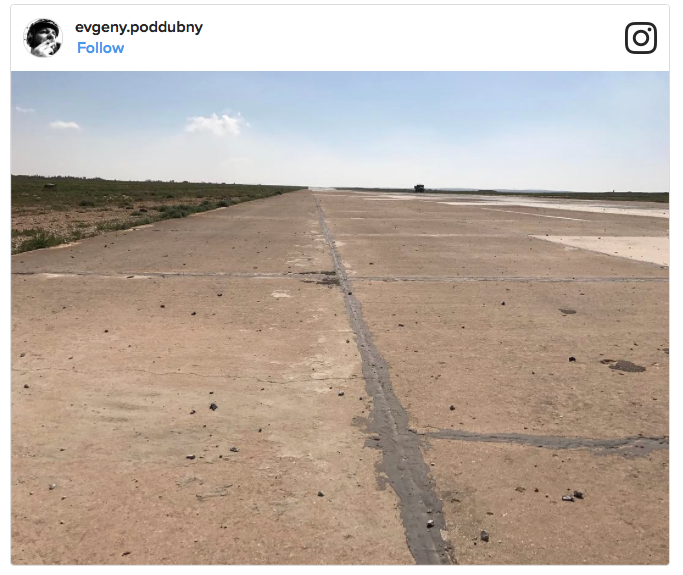 รันเวย์คอนกรีตดูเหมือนจะมีความเสียหายเล็กน้อยหรือปานกลาง เป็นเพียงหลุมขนาดเล็ก