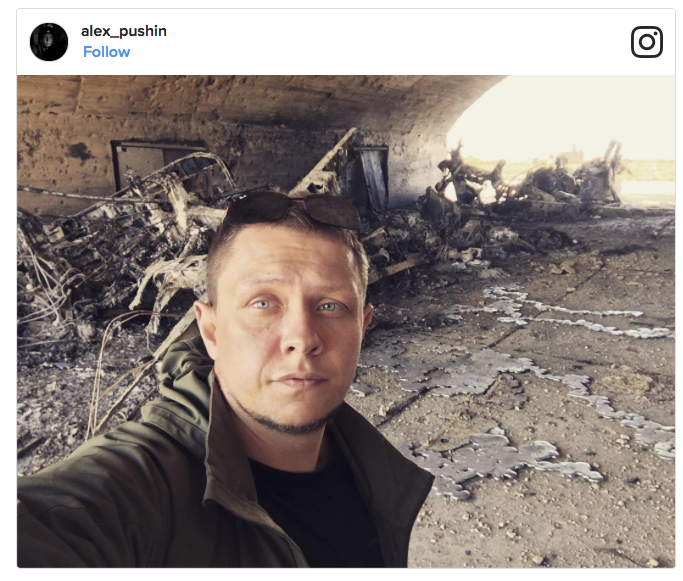 รูปถ่ายสองรูปถูกโพสต์ทางออนไลน์โดยช่างภาพสงคราม นายอเล็กซานเดอร์ ปูชิน หนึ่งในนั้นแสดงเครื่องจักรที่ถูกเผาไหม้บางส่วนภายในโรงเก็บเครื่องบิน