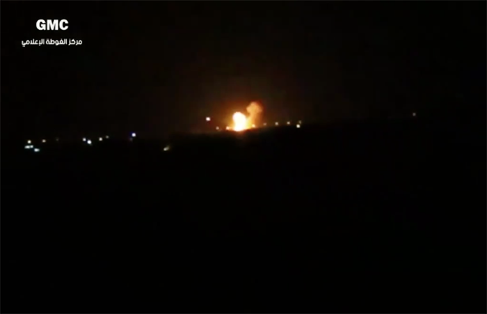 อัลมัสดาร์นิวส์ (Al-Masdar News) รายงานอ้างแหล่งข่าวในท้องถิ่น  ระบุว่า มีการโจมตีทางอากาศ 5 ครั้งต่อสนามบินหรือบริเวณใกล้เคียง แต่รายงานนี้ยังไม่สามารถตรวจสอบได้