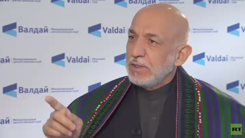 สหรัฐ ใช้การก่อความไม่สงบของไอซิสเป็นเครื่องมือในอัฟกานิสถาน โดยมุ่งเป้าทำให้เกิดความไม่สงบในภูมิภาคทั้งหมด อดีตประธานาธิบดีอัฟกานิสถานให้สัมภาษณ์สำนักข่าวอาร์ทีของรัสเซีย เขายังได้กระตุ้นให้ประชาคมระหว่างประเทศชักจูงให้สหรัฐฯ รู้สำนึก และต่อสู้กับการก่อการร้ายอย่างจริงจัง