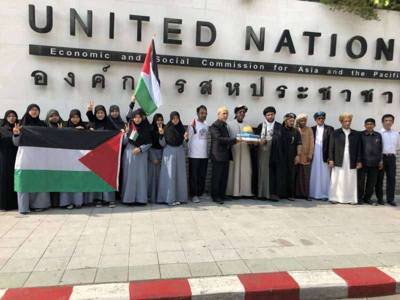 การมารวมตัวของมุสลิมไทยในครั้งนี้เพื่อแสดงจุดยืนเป็นอันหนึ่งอันเดียวกันกับมุสลิมทั่วโลกในการประณามและคัดค้านนายโดนัลด์ ทรัมป์ ประธานาธิบดีสหรัฐฯ ที่ประกาศรับรองกรุงเยรูซาเล็มเป็นเมืองหลวงของอิสราเอล และได้ยื่นหนังสือถึงข้าหลวงใหญ่สิทธิมนุษยชนแห่งสหประชาชาติ โดยขอให้สหประชาชาติเร่งแก้ไขปัญหาอย่างเร่งด่วนบนพื้นฐานความยุติธรรมและคำนึงถึงสิทธิของชาวปาเลสไตน์