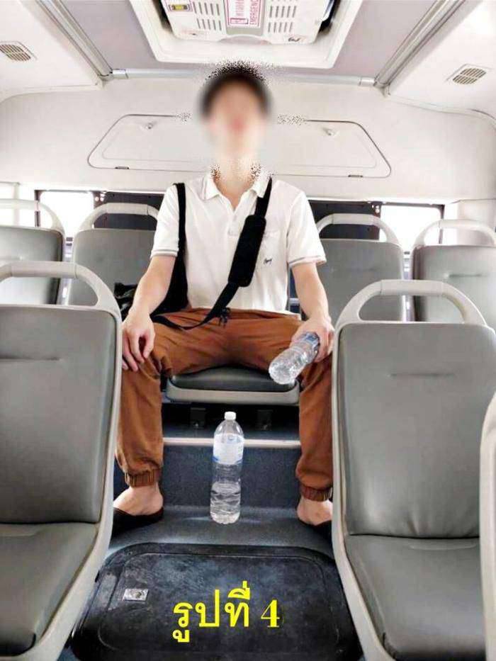รูปที่ 4 นายแบบนั่งบนเก้าอี้ที่อยู่บนพื้นระดับที่ 4 จะเห็นว่าศีรษะของนายแบบอยู่ใกล้กับหลังคารถ