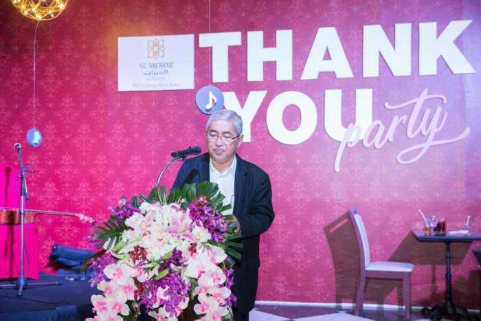เมื่อคืนวันที่ 29 พฤศจิกายน 2561 คณะผู้บริหารโรงแรมอัล มีรอซ รามคำแหง 5 จัดงานเลี้ยงปาร์ตี้ ขอบคุณสื่อมวลชนและกลุ่มลูกค้าผู้มีอุปการะคุณ สนับสนุนประชาสัมพันธ์ข้อมูลข่าวสาร กิจกรรมภายในองค์กร อาทิ โปรโมชั่นห้องอาหาร ห้องพัก และห้องฟังก์ชั่น ในวาระโอกาสสำคัญ ทั้งนี้ ภายในงานได้มีการจับฉลาก แจกรางวัลให้กับผู้ร่วมงานทั้ง กล้องFiji X-A3, Apple Watch Series3, เงินสด,Voucher ห้องอาหาร และอีกมากมาย ณ ห้องอาหาร บุสตาน ดาดฟ้าชั้น 16