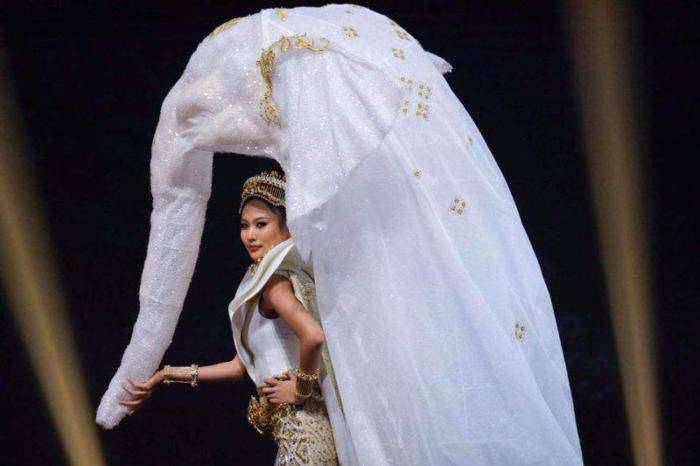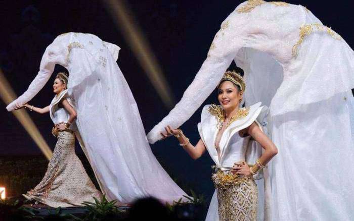 เช่นเดียวกับตัวแทนสาวไทย ‘นิ้ง โศภิดา กาญจนริทน์’ มิสยูนิเวิร์สไทยแลนด์ 2018 ได้นำเสนอชุดประจำชาติที่ชื่อว่าช้างคู่แผ่นดิน (Chang the icon of Siam) ซึ่งสวยงามโดดเด่นไม่แพ้ชาติใด