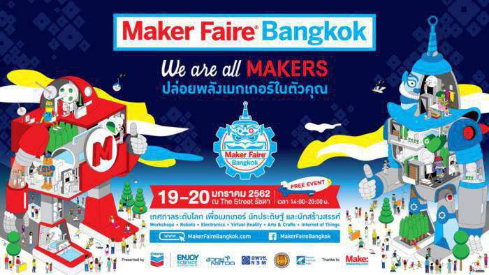 บริษัท เชฟรอนประเทศไทยสำรวจและผลิต จำกัด ร่วมกับ กระทรวงวิทยาศาสตร์และเทคโนโลยี โดย สำนักงานพัฒนาวิทยาศาสตร์และเทคโนโลยีแห่งชาติ (สวทช.) และกลุ่มเมกเกอร์ในประเทศไทย เชิญร่วมงาน“Maker Faire Bangkok 2019: WE ARE ALL MAKERS ปล่อยพลังเมกเกอร์ในตัวคุณ”