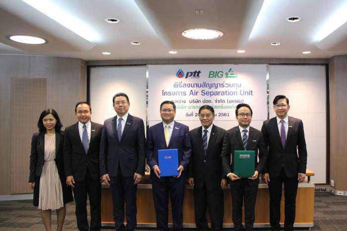 เมื่อเร็วๆ นี้ ณ สำนักงานใหญ่ บริษัท ปตท. จำกัด (มหาชน) ถนนวิภาวดีรังสิต นายชาญศิลป์ ตรีนุชกร ประธานเจ้าหน้าที่บริหารและกรรมการผู้จัดการใหญ่  บริษัท ปตท. จำกัด (มหาชน) (ปตท.)และนายปิยบุตร จารุเพ็ญ กรรมการผู้จัดการ บริษัท บางกอกอินดัสเทรียลแก๊ส จำกัด หรือบีไอจี (BIG)ได้ลงนามสัญญาร่วมทุนโครงการ Air Separation Unit หรือ หน่วยแยกอากาศ โดยใช้พลังงานความเย็นเหลือทิ้งจากก๊าซธรรมชาติเหลวหรือ แอลเอ็นจี (LNG) ในการผลิตก๊าซอุตสาหกรรม ได้แก่ ไนโตรเจน ออกซิเจน และอาร์กอน เพื่อรองรับความต้องการใช้ในโรงงานอุตสาหกรรม และใช้ประโยชน์ทางการแพทย์ที่จะยังคงขยายตัวสูงขึ้นอย่างต่อเนื่องในอนาคต โดยโครงการตั้งอยู่ในนิคมอุตสาหกรรมมาบตาพุด จ.ระยอง ใช้เงินลงทุนกว่า 1,500 ล้านบาท กำลังผลิตประมาณ450,000 ตันต่อปี คาดว่าจะสามารถดำเนินการผลิตเชิงพาณิชย์ได้ภายในปี 2564 พร้อมสนับสนุนนโยบายรัฐในโครงการระเบียงผลไม้ภาคตะวันออก(Eastern Fruit Corridor : EFC)