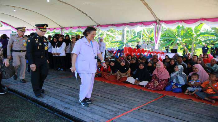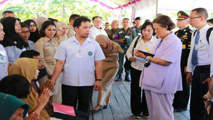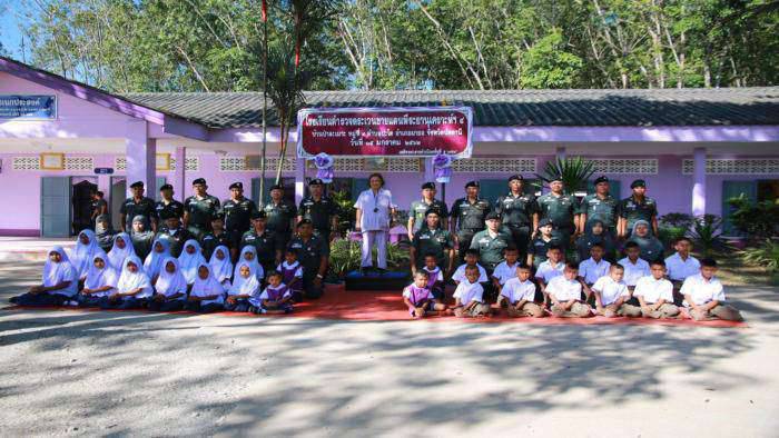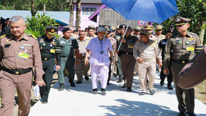 หลังจากนั้นเวลา 13.40 น. ทรงประทับรถยนต์พระที่นั่ง เพื่อเสด็จมายังโรงเรียนตำรวจตระเวนชายแดนพีระยานุเคราะห์ หมู่ที่ 4 บ้านป่าละเมาะ ตำบลปะโด อำเภอมายอ จังหวัดปัตตานี โดยมีผู้บริหารของศูนย์อำนวยการบริหารจังหวัดชายแดนภาคใต้ (ศอ.บต.) ผู้บัญชาการตำรวจตระเวนชายแดน และข้าราชการ ตลอดจนประชาชนในพื้นที่ร่วมเฝ้าฯ รับเสด็จ