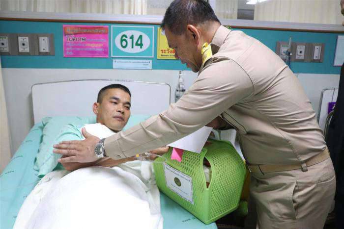 ต่อมาที่โรงพยาบาลสุไหงโกลก ได้เข้าเยี่ยมพระสงฆ์ที่รับบาดเจ็บจากเหตุการณ์เดียวกัน 2 รูป คือพระธนโชติ ชุมเลิศ โดนยิงเข้าที่เท้าซ้ายและไหลซ้าย  และพระประเวศ  สุขแก้ว โดนยิงเข้าที่ต้นขาขวาและไหล่ขวา  อีกทั้งได้เข้าเยี่ยมอาสาสมัครทหารพราน 5 นาย คือ นายกฤษติน อินอักษณ  อายุ 28 ปี  นายจุดพล ชูช่วย อายุ 33 ปี นายอิบรอเฮม ลือบากะมูดิง อายุ 31 ปี   นายนพพรัตน์ เดชน้อย อายุ 33 ปี และนายวันเฉลิม  บัวเผียน อายุ 30 ปี  ซึ่งทั้งหมดได้รับบาดเจ็บจากเหตการณ์ลอบวางระเบิดขณะเดินเท้าลาดตระเวนเส้นทาง เหตุเกิดที่บริเวณริมถนนเรียบทางรถไฟ บ้านไอบาตู หมู่ 5 ตำบลตะเต็ง อำเภอสุไหงปาดี  จังหวัดนราธิวาส เมื่อวันที่ 18 มกราคม 2562 เวลา  07.15 น.