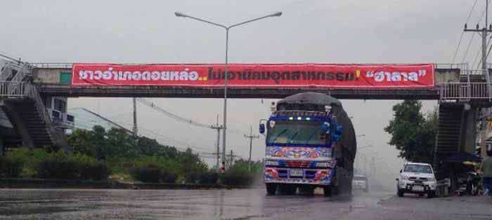 วันนี้ (27 มี.ค.) นายสุทิน สุรินต๊ะ กำนันตำบลดอยหล่อ พร้อมด้วยชมรมกำนัน ผู้ใหญ่บ้าน รวมทั้งชาวบ้านจาก 4 ตำบล รวม 26 หมู่บ้าน ในอำเภอดอยหล่อ จังหวัดเชียงใหม่หลายร้อยคน ได้เดินทางมาชุมนุมที่้หน้าที่ว่าการอำเภอดอยหล่อ เพื่อยื่นหนังสือคัดค้านการสร้างนิคมอุตสาหกรรมฮาลาลภาคเหนือ หรือสวนอาหารฮาลาล ถึงนายสุริยะ ประสาทบัญฑิตย์ ผู้ว่าราชการจังหวัดเชียงใหม่ โดยทางผู้ว่าฯ ได้มอบหมายให้ นายชนะ แพ่งพิบูลย์ รองผู้ว่าฯ เดินทางมารับเรื่องแทน