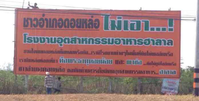 เชียงใหม่ – ชมรมกำนัน ผู้ใหญ่บ้าน พร้อมชาวบ้าน 26 หมู่บ้าน 4 ตำบลทั่วอำเภอดอยหล่อ รวมตัวยื่นเรื่องค้านตั้งนิคมฯ ฮาลาล พร้อมขึ้นป้ายคัดค้านในพื้นที่หลายจุด ผวากระทบวิถีดั้งเดิม และปัญหาความขัดแย้งทางศาสนา พร้อมประกาศคืนบัตร-ยุติบทบาทการทำงานให้รัฐจนกว่าจะสั่งล้มโครงการ