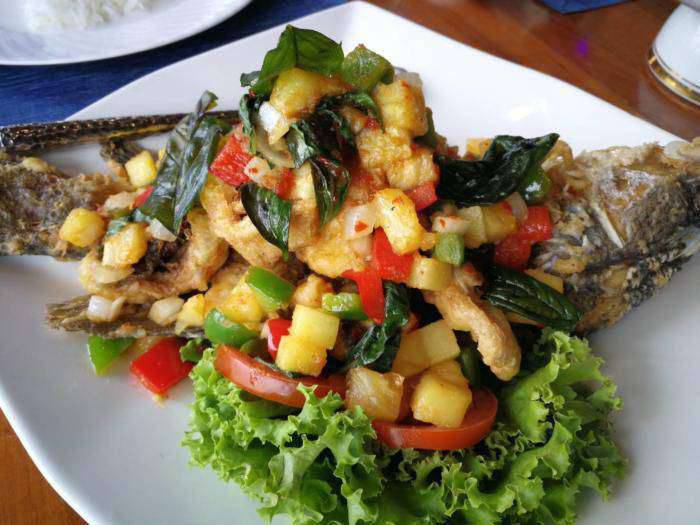 เซ็ทอาหารกลางวันแสนอร่อยวันนี้ ฝีมือ เชฟไรลา ไซหนิบ เช่นเคย ได้แก่ ไก่ห่อใบเตย ซุปหางวัว ปลากะพงสามรส แกงเผ็ดเป็ดย่าง ตบท้ายด้วยของหวาน บัวลอยไข่เค็ม (หวานน้อย)