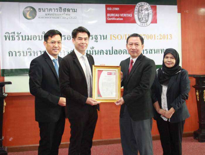 ธนาคารอิสลามแห่งประเทศไทย (ไอแบงก์) ได้รับการรับรองมาตรฐาน ISO/IEC 27001:2013 สำหรับระบบบริหารจัดการความมั่นคงปลอดภัยสารสนเทศ (Information Security Management System: ISMS) ของศูนย์ข้อมูลหลักและศูนย์ข้อมูลสำรอง (Data Center and Back-Up Site) ที่สนับสนุนการให้บริการระบบ Core Banking, ระบบการชำระเงิน BAHTNET และ ระบบการหักบัญชีเช็คด้วยภาพเช็คและระบบการจัดเก็บภาพเช็ค (ICAS) จาก บริษัท บูโรเวอริทัส เซอทิฟิเคชั่น (ประเทศไทย) จำกัด ซึ่งเป็นสถาบันรับรองมาตรฐานของประเทศอังกฤษ โดยมีนายวุฒิชัย สุระรัตน์ชัย กรรมการและผู้จัดการธนาคารอิสลามแห่งประเทศไทย เป็นผู้รับมอบใบรับรอง (Certification) จากนายประวาลทอง ทองใหญ่ ณ อยุธยา ผู้จัดการฝ่ายรับรองมาตรฐาน บริษัท บูโรเวอริทัส เซอทิฟิเคชั่น (ประเทศไทย) จำกัด และมีนายนิพนธ์ นาชิน กรรมการผู้จัดการ บริษัท เอซิส โปรเฟสชั่นนัล เซ็นเตอร์ จำกัด ที่ปรึกษาด้านมาตรฐาน ISO/IEC 27001:2013 ของไอแบงก์ ร่วมแสดงความยินดี ณ ห้องประชุมใหญ่ ไอแบงก์ เมื่อช่วงเช้าวันที่ 20 มีนาคม 2562 ที่ผ่านมา