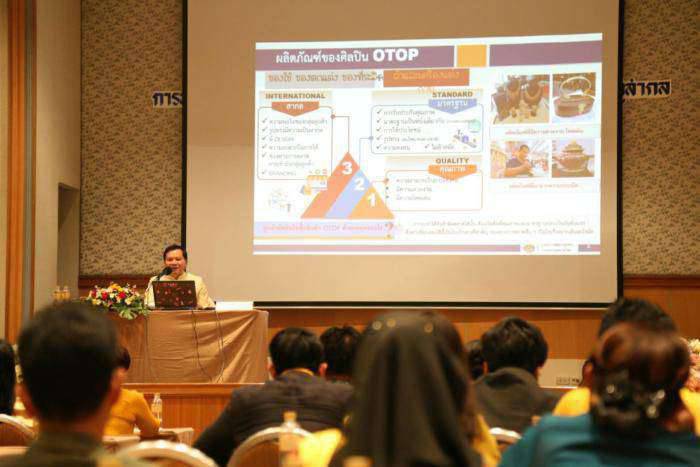 ในการนี้รองอธิบดีฯ ได้บรรยายพิเศษปิดท้ายโครงการฯ ในหัวข้อ “แนวทางการพัฒนาศิลปิน OTOP สู่สากล” เน้นย้ำ การพัฒนาศิลปิน OTOP ต้องพัฒนาไปสู่สากล จำเป็นต้องมีคุณภาพ และมาตรฐาน โดยใช้องค์ความรู้ทางวิทยาศาสตร์เข้ามาช่วย รวมถึงหลักการตลาดที่คำนึงถึงความต้องการของลูกค้า เน้นสร้างคุณค่าและมูลค่าเพิ่มให้กับผลิตภัณฑ์