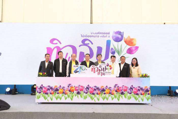นายสุรศักดิ์ เจริญศิริโชติ ผู้ว่าราชการจังหวัดระยอง และนายชาญศิลป์ ตรีนุชกร ประธานเจ้าหน้าที่บริหารและกรรมการผู้จัดการใหญ่ บริษัท ปตท. จำกัด (มหาชน) ร่วมเปิดงานมหัศจรรย์ไม้เมืองหนาวครั้งที่ 8 : ทิวลิปบานที่ระยองณ สวนสมุนไพรสมเด็จพระเทพรัตนราชสุดาฯ สยามบรมราชกุมารี จ.ระยอง เพื่อเชิญชวนพี่น้องชาวไทยพักผ่อนในช่วงเทศกาลสงกรานต์ภายใต้แนวคิด “The Charming of Wonder Village” มนต์เสน่ห์หมู่บ้านในฝัน ท่ามกลางทุ่งทิวลิปและดอกไม้เมืองหนาวอันสวยงามตระการตาโดยเปิดให้ประชาชนร่วมชมงานได้ตั้งแต่วันที่ 6 – 21 เมษายน 2562