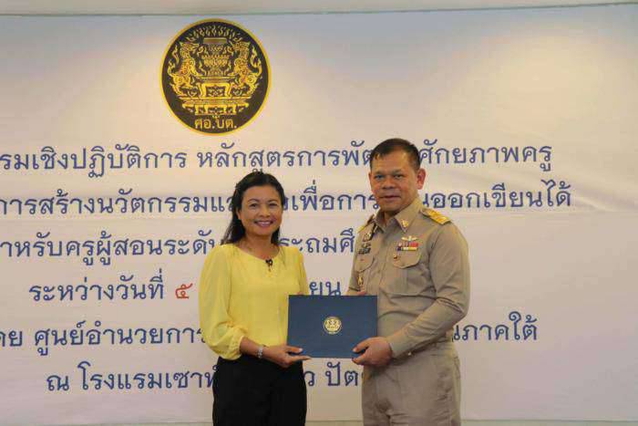 ทั้งนี้การฝึกอบรมเชิงปฏิบัติการหลักสูตรการพัฒนาศักยภาพครู เสริมสร้างทักษะการสร้างนวัตกรรมและสื่อเพื่อการอ่านออกเขียนได้สำหรับครูผู้สอนระดับชั้นประถมศึกษาปีที่ 2 เป็นการดำเนินงานตามโครงการ การเพิ่มโอกาสทางการศึกษา และการเรียนรู้ตลอดชีวิตในพื้นที่จังหวัดชายแดนภาคใต้ ได้แก่ยะลา ปัตตานี นราธิวาส และ 4 อำเภอของจังหวัดสงขลา ที่จะทำการพัฒนาคุณภาพโรงเรียนพระราชดำริสมเด็จพระเทพรัตนราชสุดาฯ สยามบรมราชกุมารี โดยมีวัตถุประสงค์เพื่อเป็นการสนองแนวทางพระราชดำริของสมเด็จพระเทพรัตนราชสุดาฯ สยามบรมราชกุมารี ต่อการพัฒนาเด็กและเยาวชนในพื้นที่จังหวัดชายแดนภาคใต้ ให้สามารถอ่านออกเขียนได้ รวมถึงเป็นการพัฒนาศักยภาพครูผู้สอนภาษาไทย ให้มีความรู้ มีทักษะในการใช้สื่อนวัตกรรมการสอนภาษาไทย เพื่อเป็นเครื่องมือในการจัดการเรียนการสอนให้กับนักเรียนได้อย่างมีประสิทธิภาพ