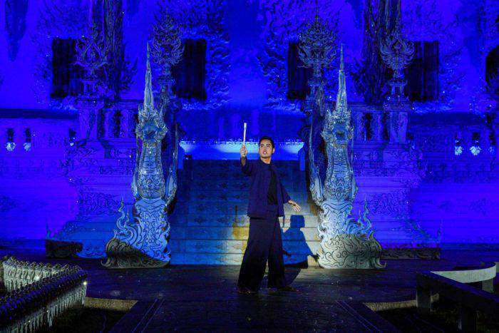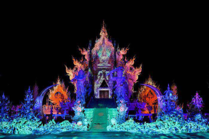ด้านอาจารย์เฉลิมชัย โฆษิตพิพัฒน์ ศิลปินแห่งชาติ ผู้สร้าง“วัดร่องขุ่น”กล่าวว่า “..THE WHITE TEMPLE วัดร่องขุ่นร่วมกับอินเด็กซ์ฯสร้างสรรค์งานศิลปะ เมื่อศิลปินฝ่ายแสงฝ่ายการแสดงเข้ามาร่วมกันในการสร้างสรรค์งานศิลปะระดับโลกในยามกลางคืนจะมีความงดงามเหลือเกินงานระดับโลกนะครับพี่น้องมาชมนะครับถ้ามีโอกาสในเดือนพฤศจิกายน วันที่ 22 พฤศจิกายน – 22 ธันวาคม 2562 สองรอบเท่านั้นคือรอบ 18:30 น.และรอบ 20:30 น. เพื่อศักดิ์ศรีของชาติ ก่อนผมคิดอะไรทำอะไรต้องระดับโลกเท่านั้นดังนั้นงานครั้งนี้ต้องงดงามและยิ่งใหญ่อยากให้พี่น้องประชาชนคนไทยทุกคนถ้ามีโอกาสมาเชียงรายในช่วงหน้าหนาว อย่าลืมนะครับมาชมกลางคืนที่นี่ งดงามที่สุดและอาจจะเห็นครั้งเดียวนะครับ 1 เดือนของปีนี้เท่านั้น ปีหน้าอาจจะทำไม่ได้ เพราะต้นทุนมันสูงมากโอกาสขาดทุนมีเยอะ ต่อให้เก็บตั๋วได้มากขนาดไหน ขายหมดทุกรอบก็ขาดทุนอยู่ดี เราจะทำเพื่อประเทศชาติศักดิ์ศรีของประเทศ บันทึกไว้เป็นประวัติศาสตร์ว่า วัดร่องขุ่นไลท์เฟส THE WHITE TEMPLE นั้นยิ่งใหญ่สุดยอดไม่มีวันลืมเลือน จองบัตรที่ไทยทิกเก็ตเมเจอร์ทุกสาขา รีบจองด่วนเพราะถ้าบัตรหมดท่านอาจไม่มีสิทธิ์ได้ชม..”