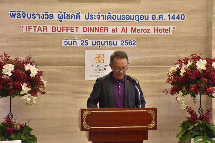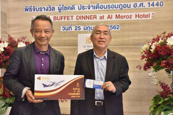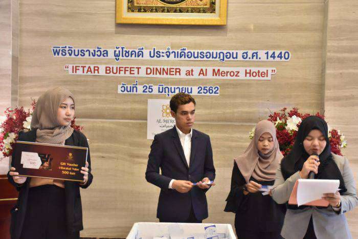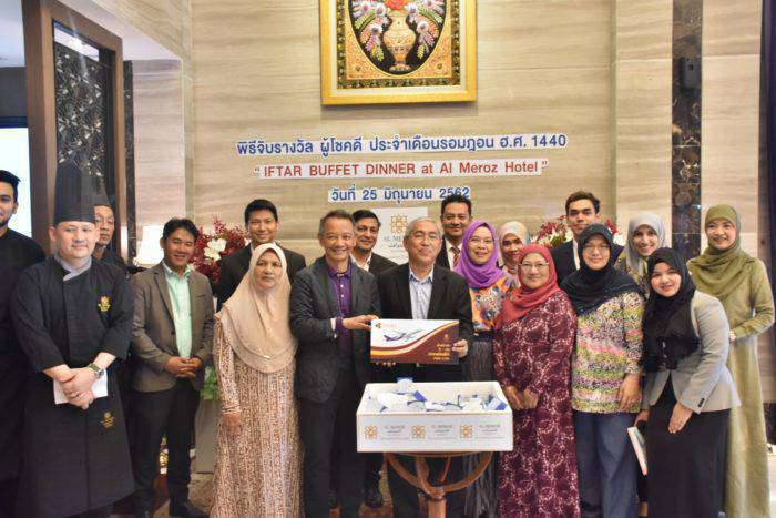 คุณรอศักดิ์ มูลทรัพย์ ประธานกรรมการบริหารโรงแรมอัลมีรอซ และคณะกรรมการบริหารโรงแรมฯ ร่วมจัดพิธีจับรางวัลผู้โชคดีประจำเดือนรอมฎอน ฮิจเราะฮ์ศักราชที่ 1440 รวมมูลค่ากว่า 100,000บาท ให้แก่ผู้มารับประทานอาหารละศิลอดและร่วมละหมาดตะรอเวี้ยะห์รวมทั้งบริจาคทานในเดือนรอมฎอนที่โรงแรมอัล มีรอซ รามคำแหง ซอย5