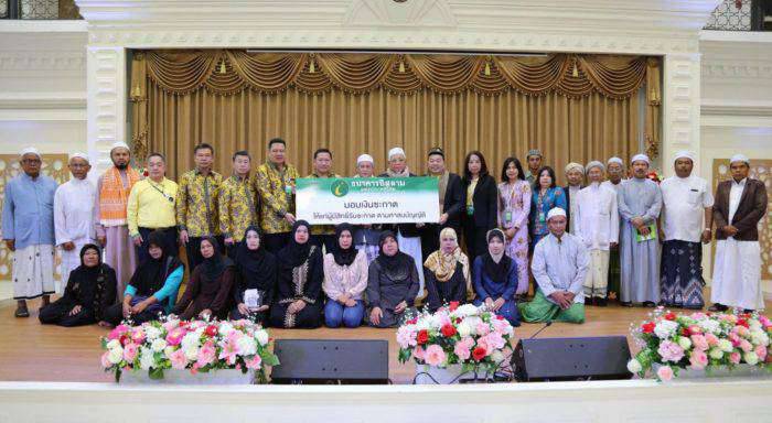 วันที่ 26 มิถุนายน 2562 นายวุฒิชัย สุระรัตน์ชัย กรรมการและผู้จัดการ ธนาคารอิสลามแห่งประเทศไทย (ไอแบงก์) และนายอรุณ บุญชม ผู้ชำนาญการด้านการเงินอิสลาม พร้อมด้วยผู้บริหารธนาคาร ร่วมเป็นเกียรติในพิธีส่งมอบเงินซะกาต ภายใต้ “โครงการซะกาตเพื่อส่งเสริมอาชีพผู้ยากจน ครั้งที่ 2 ปี 2562” เพื่อเป็นทุนประกอบอาชีพสำหรับผู้ยากจน จำนวน 10 ทุนๆ ละ 7,000 บาท รวมเป็นเงินทั้งสิ้น 70,000 บาท โดยมี นายดิเรก วันแอเลาะ เลขานุการคณะกรรมการอิสลามประจำจังหวัดนนทบุรี นายปรีดา เชื้อผู้ดี ที่ปรึกษาจุฬาราชมนตรี พร้อมด้วยคณะกรรมการอิสลามประจำจังหวัดนนทบุรี ร่วมเป็นสักขีพยานในพิธีส่งมอบเงินซะกาต ซึ่งโครงการที่จัดขึ้นในครั้งนี้ ได้รับความร่วมมือเป็นอย่างดีจากคณะกรรมการอิสลามประจำจังหวัดนนทบุรี และอิหม่ามประจำมัสยิดในพื้นที่จังหวัดนนทบุรีเป็นผู้ทำการคัดเลือกผู้ยากจนที่เข้าเกณฑ์รับซะกาต และรับทุนซะกาตเพื่อเป็นทุนในการประกอบอาชีพ ซึ่งเป็นไปตามกระบวนการบริหารจัดการซะกาต โดยธนาคารมีเป้าหมายที่จะให้เกิดประสิทธิภาพและประสิทธิผลสูงสุด ในการดำเนินการจ่ายซะกาตแทนผู้จ่ายซะกาตและเป็นประโยชน์กับผู้รับซะกาตตามบทบัญญัติของศาสนาอิสลาม