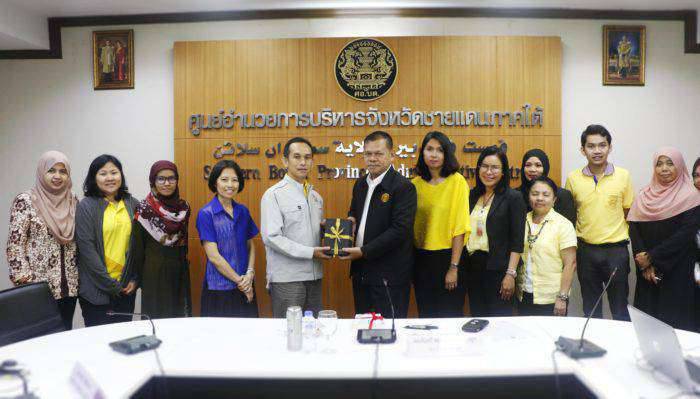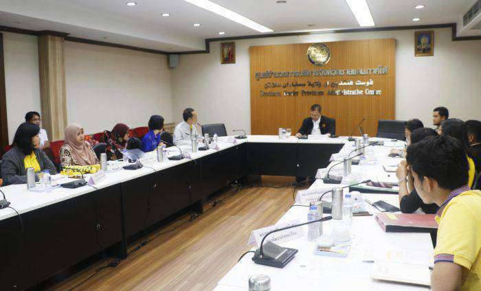ด้าน รองศาสตราจารย์ ดร.ซุกรี หะยีสาแม คณบดีคณะวิทยาศาสตร์และเทคโนโลยีมหาวิทยาลัยสงขลานครินทร์ วิทยาเขตปัตตานี กล่าวว่า ขอขอบคุณท่านเลขาธิการ ศอ.บต. และผู้บริหารทุกคนที่ร่วมต้อนรับคณะในครั้งนี้ และการมาเยี่ยมเยียนผู้บริหาร ศอ.บต. ในครั้งนี้ เพื่อตั้งใจในการเรียนรู้การพัฒนาด้านเศรษฐกิจของพื้นที่จังหวัดชายแดนภาคใต้ โดยเฉพาะเรื่องของสัตว์น้ำเศรษฐกิจใหม่ถือเป็นสัตว์ที่มีศักยภาพสูงและมีหลายชนิด ที่ทาง มอ. อยากนำเสนอคือ ปูทะเล ซึ่งเป็นสัตว์น้ำที่ตลาดมีความต้องการสูง ซึ่งพื้นที่ปัตตานีมีความเหมาะสมอย่างยิ่งในการเพาะพันธุ์ปูรวมทั้งมีป่าชายเลน ที่ตอบสนองเศรษฐกิจฐานทะเลซึ่งมีความสอดคล้องกับสิ่งแวดล้อม และมีความเป็นไปได้สูงที่สุดในบรรดาสัตว์น้ำอื่น ๆ โดยใช้วิธีการเลี้ยงแบบพึ่งธรรมชาติ แต่ปัจจุบันยังไม่มีโรงเพาะฟัก ยังไม่มีฟาร์มอนุบาล ทั้งนี้ต้องอาศัยแรงสนับสนุนจากหลายหน่วยงานเพื่อดำเนินการเรื่องดังกล่าว เพื่อต่อยอดการสร้างงานของพี่น้องในพื้นที่ในครั้งนี้ด้วย