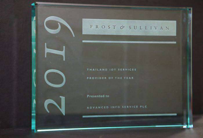 AIS รับรางวัล Thailand IOT Services Provider of the Year จากเวที 2019 Frost & Sullivan Thailand Excellence Awards จัดโดย บริษัท ฟรอสต์ แอนด์ ซัลลิแวน องค์กรให้คำปรึกษาและวิจัยระดับโลก โดยนางอัศนีย์ วิภาตเวทย์ หัวหน้าส่วนงานผลิตภัณฑ์ลูกค้าองค์กรและบริการระหว่างประเทศเป็นผู้รับรางวัลจาก มร. เคนนี่ เยา รองผู้อำนวยการ ฝ่ายที่ปรึกษาอุตสาหกรรมดิจิทัล ประจำภูมิภาคเอเชียและแปซิฟิก ณ โรงแรมฮิลตัน กัวลาลัมเปอร์ ประเทศมาเลเซีย