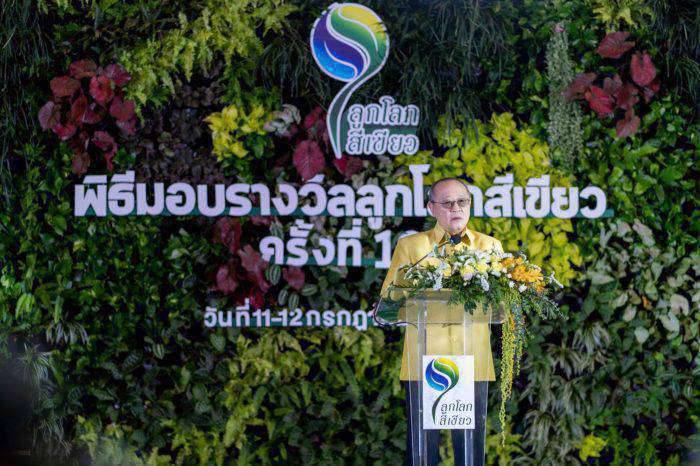 “นับตั้งแต่ปี 2542 ที่ได้มีการจัดพิธีมอบ “รางวัลลูกโลกสีเขียว” ขึ้น เพื่อยกย่อง เชิดชู บุคคล ชุมชน เยาวชน และสื่อมวลชน ผู้มีจิตสาธารณะในการร่วมอนุรักษ์ทรัพยากรของประเทศ ทั้ง ดิน น้ำ ป่า และสิ่งแวดล้อม จนเกิดผลสำเร็จอย่างประจักษ์ ล้วนเป็นสิ่งที่ยืนยันได้ดีว่า เราทุกคนตระหนักอยู่เสมอ ถึงหน้าที่ในฐานะสมาชิกของโลก ที่ต้องการร่วมประคับประคอง แก้ปัญหา ฟื้นฟู และรักษาทรัพยากรของโลก เพื่อดำรงไว้ซึ่งความหลากหลายทางชีวภาพอย่างยั่งยืน อันจะดำรงประโยชน์ต่อชีวิตของคนและชุมชนอย่างแท้จริง เป็น “พลังเปลี่ยนโลก” สำคัญ ที่จะขับเคลื่อนประเทศไทย ให้กลับมีความสมบูรณ์ เป็นอู่ข้าว อู่น้ำ ของพี่น้องไทย สร้างชุมชนและประเทศไทย ให้มีความผาสุก ด้วยวิถีชีวิตพอเพียง บนฐานทรัพยากรที่ทุกคนต่างตระหนักถึงคุณค่า รู้ใช้ รู้รักษา เปลี่ยนตนเอง เพื่ออนาคตทรัพยากรที่สมบูรณ์ต่อไป”