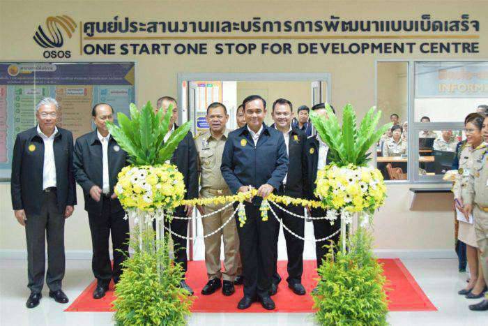 ต่อมา นายกรัฐมนตรี/รัฐมนตรีว่าการกระทรวงกลาโหม เป็นประธานเปิดศูนย์ประสานงานและบริการการพัฒนาแบบเบ็ดเสร็จ (OSOS) ซึ่งเป็นหน่วยที่เป็นศูนย์กลางการบริหารการลงทุนในพื้นที่จังหวัดชายแดนภาคใต้ เพื่อเร่งรัดการพัฒนาเศรษฐกิจในพื้นที่ให้สามารถรองรับการพัฒนาเศรษฐกิจและสังคม สร้างการรับรู้และสร้างโอกาส การเข้าถึงบริการทางด้านเศรษฐกิจ อำนวยความสะดวกให้แก่นักลงทุน ผู้ประกอบการ และประชาชนทั่วไป ตลอดจนให้คำปรึกษา ให้ข้อมูลเกี่ยวกับการดำเนินธุรกิจในพื้นที่จังหวัดชายแดนภาคใต้ รวมทั้งเป็นประธานเปิดศูนย์ช่วยเหลือเยียวยาผู้ได้รับผลกระทบในพื้นที่จังหวัดชายแดนภาคใต้เพื่ออำนวยความสะดวกให้แก่ผู้ที่ต้องการดำเนินการในเรื่องขั้นตอนการได้รับสิทธิการช่วยเหลือเยียวยา