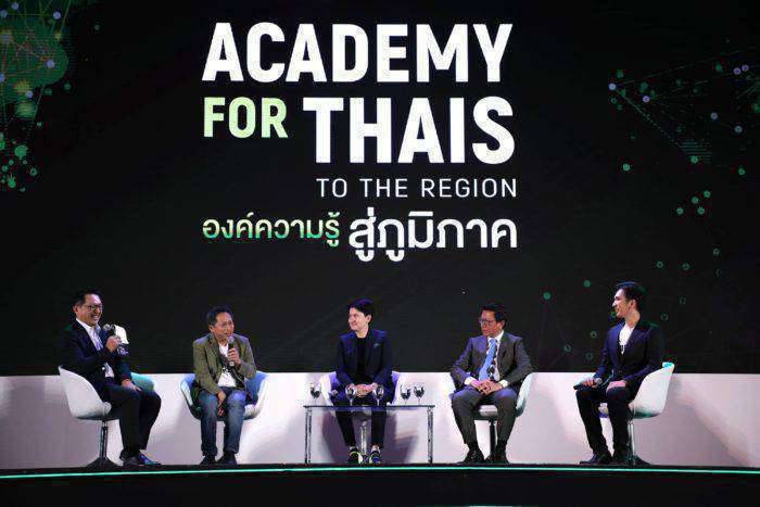 ตลอด 4 ปี ที่ผ่านมา AIS Academy จัดตั้งขึ้นเป็นศูนย์กลางด้านการเรียนรู้เทคโนโลยี นวัตกรรมต่างๆ จากทั้งภายในและต่างประเทศ ด้วยบทบาทหน้าที่สำคัญในการพัฒนาศักยภาพของบุคลากรภายในองค์กรในทุกระดับชั้น โดยมี Digital Platform เป็นแหล่งความรู้ให้พนักงานสามารถเข้าถึงได้ทุกที่ ทุกเวลา สร้างวัฒนธรรมแห่งการตื่นรู้และพร้อมรับมือต่อการเปลี่ยนแปลงของเทคโนโลยีอยู่เสมอ ต่อจากนั้น AIS Academy ขยับบทบาทสู่ภารกิจ “คิดเผื่อ” เพื่อคนไทยทุกคน โดยทำหน้าที่เป็นแกนกลางส่งต่อองค์ความรู้ให้แก่สังคมไทยเพิ่มเติม ร่วมกับหลายองค์กรชั้นนำทั้งในและต่างประเทศ จัดงานสัมมนานานาชาติ ACADEMY for THAIs ขึ้นเป็นครั้งแรก เมื่อช่วงเดือนตุลาคม ปี 2561 โดยได้รับเกียรติจากผู้เชี่ยวชาญด้าน Digital Disruption ที่มีชื่อเสียงระดับโลกจากหลากหลายสถาบัน อาทิ ตลาดหลักทรัพย์แห่งประเทศไทย, ธนาคารกสิกรไทย, เมืองไทยประกันชีวิต, Minor International, SEAC, มหาวิทยาลัย Stanford และ MIT มาบอกเล่าถึงบทบาทของเทคโนโลยีแห่งอนาคตที่จะมาพลิกโฉมวิถีชีวิตของคนทั่วโลก ไม่ว่าจะเป็นเทคโนโลยี AI, IOT, Robotic และ Blockchainจากนั้น เมื่อต้นปีที่ผ่านมา AIS Academy ได้จัดงาน AIS ACADEMY for THAIs: Intelligent Nation Series โดยนำ Case Study ที่น่าสนใจในบริบทของไทยและระดับโลกอย่าง Netflix,IBM, Skype, เซ็นทรัลกรุ๊ป, สำนักงานส่งเสริมเศรษฐกิจดิจิทัล (Depa)และ Class Café มาสะท้อนให้เห็นถึงแนวคิด การก้าวข้ามการเปลี่ยนแปลงทางเทคโนโลยี และการปรับตัวให้ทันต่อการเปลี่ยนแปลงของผู้บริโภคยุคดิจิทัลที่ส่งผลต่อการขับเคลื่อนในโลกธุรกิจ โดยล่าสุด ได้สานต่อ “ภารกิจคิดเผื่อ” มายังส่วนภูมิภาคขึ้นเป็นครั้งแรกที่จังหวัดเชียงใหม่ และขอนแก่น เพื่อร่วมเป็นส่วนหนึ่งในการผลักดันและสร้างโอกาสให้เหล่าผู้ประกอบการธุรกิจในพื้นที่และประชาชนที่สนใจ ได้ขยายองค์ความรู้ให้เท่าทันต่อกระแสDigital Disruptionพร้อมสร้างการเติบโตทางธุรกิจตลอดจนช่วยยกระดับคุณภาพชีวิตของคนไทยได้อย่างยั่งยืนต่อไป
