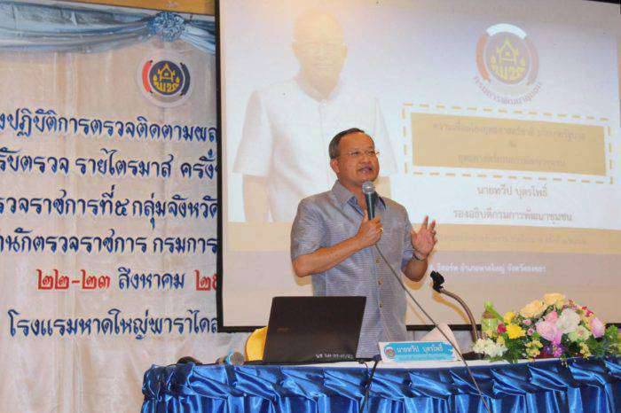 วันที่ 22 สิงหาคม 62 นายนิสิต จันทร์สมวงศ์ อธิบดีกรมการพัฒนาชุมชน มอบหมายให้ นายทวีป บุตรโพธิ์ รองอธิบดีกรมการพัฒนาชุมชน เป็นประธานในพิธีเปิดการประชุมเชิงปฏิบัติการตรวจติดตามผลการดำเนินงานของหน่วยรับตรวจ รายไตรมาส ครั้งที่ 2/2562 และ มอบนโยบายและแนวทางการขับเคลื่อนยุทธศาสตร์กรมฯ ปี 2562 รวมทั้งติดตามผลการขับเคลื่อนยุทธศาสตร์กรมฯ และเสริมสร้างความรู้ ความเข้าใจแก่บุคลากรของสำนักงานพัฒนาชุมชนจังหวัด ซึ่งเป็นหน่วยรับตรวจ และบรรยายพิเศษ ความเชื่อมโยงยุทธศาสตร์ชาติ นโยบายรัฐบาล กับ ยุทธศาสตร์กรมการพัฒนาชุมชน : ระบบราชการ 4.0