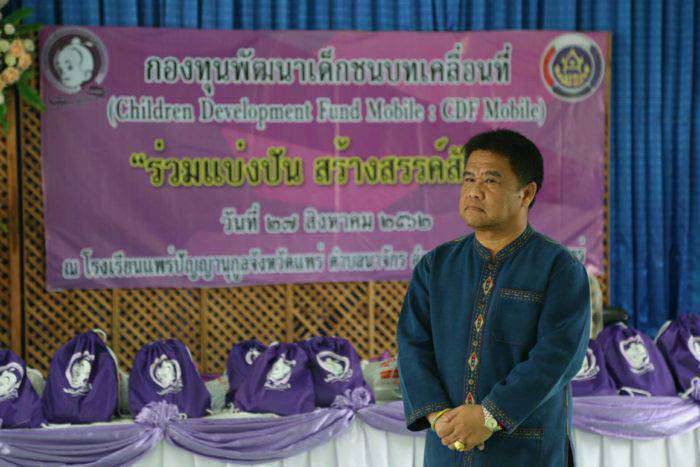 วันที่ 27 สิงหาคม 2562 เวลา 10.00 น. นายนิสิต จันทร์สมวงศ์ อธิบดีกรมการพัฒนาชุมชน มอบหมายให้นายสมหวัง พ่วงบางโพ รองอธิบดีกรมการพัฒนาชุมชน พร้อมด้วย รองประธานชมรมแม่บ้านพัฒนาชุมชน เป็นประธานในพิธีมอบทุนอุปการะเด็ก และถุงของใช้ที่จำเป็นสำหรับเด็ก ตามโครงการ กองทุนพัฒนาเด็กชนบทเคลื่อนที่ (ChildrenDevelopment Fund Mobile : CDF Mobile) ร่วมกับจังหวัดแพร่ มอบทุน จำนวน 43 ราย และมอบสื่ออุปกรณ์การเรียน แก่โรงเรียนศูนย์ศึกษาพิเศษจังหวัดแพร่ ต่อจากนั้นร่วมเลี้ยงอาหารกลางวันเด็กและผู้ปกครอง โดยมี นายอนุศิษฏ์ ไทยรวีวงศ์ รองผู้ว่าราชการจังหวัดแพร่ กล่าวต้อนรับ และ นายอุทัย ทองเดช ผู้อำนวยการสำนักเสริมสร้างความเข้มแข็งชุมชน กล่าวรายงาน