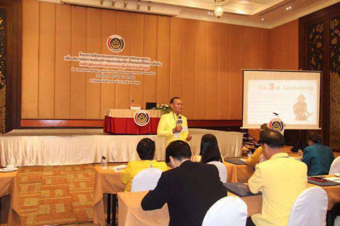 ในการนี้อธิบดีฯ ให้เกียรติบรรยายพิเศษ ในหัวข้อ “ 8 Changes in CDD” ประกอบด้วย การเปลี่ยนแปลงไปสู่ ประชารัฐ Disruptive technology จิตอาสา คุณภาพมาตรฐาน ศูนย์บริหารจัดการข้อมูลกลางเพื่อการพัฒนา Regulator ในกองทุน Image และ Excellent Organization และเน้นย้ำให้นำเทคโนโลยีที่ก้าวหน้า รวดเร็วในยุค 4.0 มาใช้ให้เป็นประโยชน์ และการสนับสนุนให้คนรุ่นใหม่เข้ามามีบทบาทในการพัฒนาเศรษฐกิจฐานราก โดยการสร้างบุคลากรของกรมการพัฒนาชุมชน ให้เป็น “นักพัฒนาธุรกิจชุมชน” เพื่อขับเคลื่อนงานพัฒนาชุมชนให้ประสบผลสำเร็จ