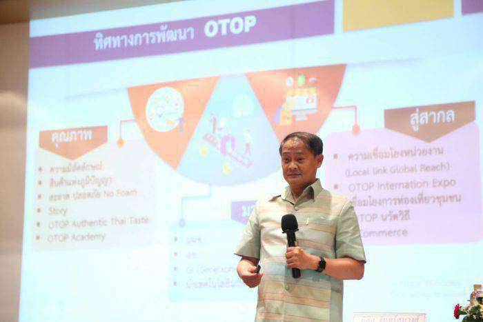 วันที่ 6 กันยายน 2562 นายนิสิต จันทร์สมวงศ์ อธิบดีกรมการพัฒนาชุมชน เป็นประธานพิธีเปิดการประชุมเชิงปฏิบัติการประเมินผลการดำเนินงานโครงการพัฒนาผลิตภัณฑ์ OTOP เพื่อจำหน่ายบนเครื่องบิน และบรรยายพิเศษ ในหัวข้อ “ทิศทางการพัฒนา OTOP ในยุคปัจจุบัน” โดยเน้นย้ำ ให้ตะหนักถึงสถานการณ์โอกาสและอุปสรรคในยุคปัจจุบัน โดยเฉพาะตลาดออนไลน์ และบริษัทประชารัฐรักสามัคคี ที่ดำเนินงานโดยไม่ได้แสวงหากำไร สามารถเข้ามาช่วยพัฒนาสินค้าและเทคโนโลยีได้ ณ ห้องเอเวอร์กรีน ชั้น 5 โรงแรมเอเซีย แอร์พอร์ต อำเภอลำลูกกา จังหวัดปทุมธานี