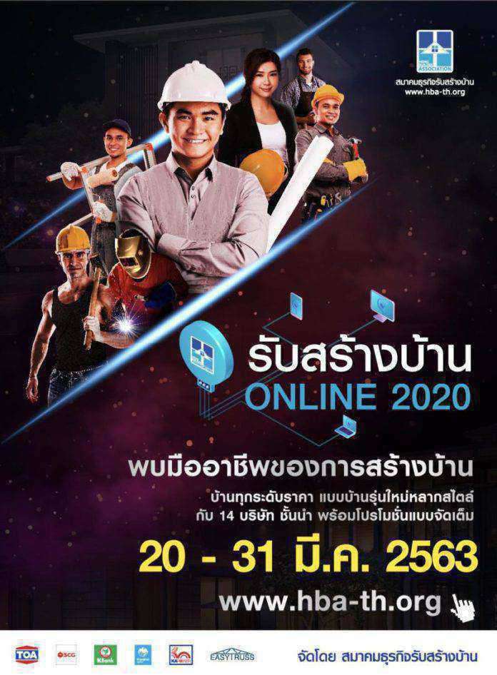 สมาคมธุรกิจรับสร้างบ้านปรับกลยุทธ์ตามสถานการณ์การแพร่ระบาดเชื้อไวรัสโควิด19 สู่การจัดงานแสดงสินค้าออนไลน์ (Online Exhibition) กับงานรับสร้างบ้านออนไลน์ 2020 จัดเต็มโปรโมชั่น แบบบ้านทุกระดับราคา และข้อเสนอดีๆ จากบริษัทรับสร้างบ้านชั้นนำเช่นเดิม พร้อมลุย 20-31 มีนาคม นี้ทาง www.hba-th.org
