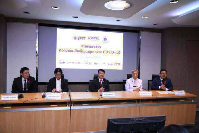 ศ.ดร.จำรัส ลิ้มตระกูล อธิการบดีสถาบันวิทยสิริเมธี (VISTEC) ศ.ดร.นพ.ประสิทธิ์ วัฒนาภา คณบดีคณะแพทยศาสตร์ ศิริราชพยาบาล และ นายชาญศิลป์ ตรีนุชกร ประธานเจ้าหน้าบริหารและกรรมการผู้จัดการใหญ่ บริษัท ปตท. จำกัด (มหาชน) ร่วมแถลงข่าวสืบเนื่องจากสถานการณ์การแพร่ระบาดของไวรัสโคโรนาสายพันธุ์ใหม่ 2019 (COVID-19) ทั่วโลกในขณะนี้ ที่ยังไม่มีแนวโน้มว่าจะคลี่คลายในเร็ววัน สถาบันวิทยสิริเมธี จึงได้ใช้ศักยภาพและองค์ความรู้ของบุคลากรสถาบันฯ เร่งพัฒนาชุดตรวจวินิจฉัย COVID-19 โดยความช่วยเหลือด้านเทคโนโลยีจาก สถาบัน Broad Institute, Massachusetts Institute of Technology and Harvard, USA และความร่วมมือกับภาคีเครือข่าย ประกอบด้วย กรมวิทยาศาสตร์การแพทย์ กระทรวงสาธารณสุข คณะแพทยศาสตร์ศิริราชพยาบาล คณะวิทยาศาสตร์มหาวิทยาลัยมหิดล และโรงพยาบาลพระปกเกล้า จ.จันทบุรี ในการวิจัยเพื่อพัฒนาชุดตรวจวินิจฉัยไวรัสโคโรนาสายพันธุ์ใหม่ 2019 (COVID-19) ให้สามารถตรวจโรคได้ภายใน 30 – 45 นาที ซึ่งรวดเร็วกว่าวิธีการตรวจในปัจจุบันที่ใช้เวลา 4 – 6 ชั่วโมงในห้องปฏิบัติการทางวิทยาศาสตร์ โดยการสนับสนุนงบประมาณการวิจัยจาก กลุ่ม ปตท. และ ธนาคารไทยพาณิชย์ (SCB)