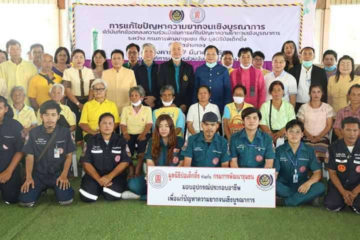 ทั้งนี้ หลังจากการมอบเครื่องมือและอุปกรณ์ประกอบอาชีพในวันนี้ไป กรมการพัฒนาชุมชนได้มอบหมายให้พัฒนากร ร่วมกับกำนัน ผู้ใหญ่บ้าน ผู้บริหาร อปท.และเครือข่ายพัฒนาชุมชนในพื้นที่คอยเป็นพี่เลี้ยงดูแล ให้ความช่วยเหลือหากมีปัญหาอุปสรรคและรายงานผลให้กรมฯ ทราบเป็นระยะ จนกว่าครัวเรือนนั้นจะหลุดพ้นจากความยากจน และกรมการพัฒนาชุมชน กับมูลนิธิป่อเต็กตึ๊ง มีเป้าหมายที่จะดำเนินการมอบมอบอุปกรณ์ประกอบอาชีพ ให้กับครัวเรือนยากจนให้ครบทุกจังหวัด เพื่อบำบัดทุกข์ บำรุงสุข และลดความเหลื่อมล้ำในสังคมตามนโยบายของรัฐบาล และกระทรวงมหาดไทย ให้ครัวเรือนเป้าหมายมีอาชีพมีรายได้ และมีคุณภาพชีวิตที่ดีขึ้นในที่สุด”