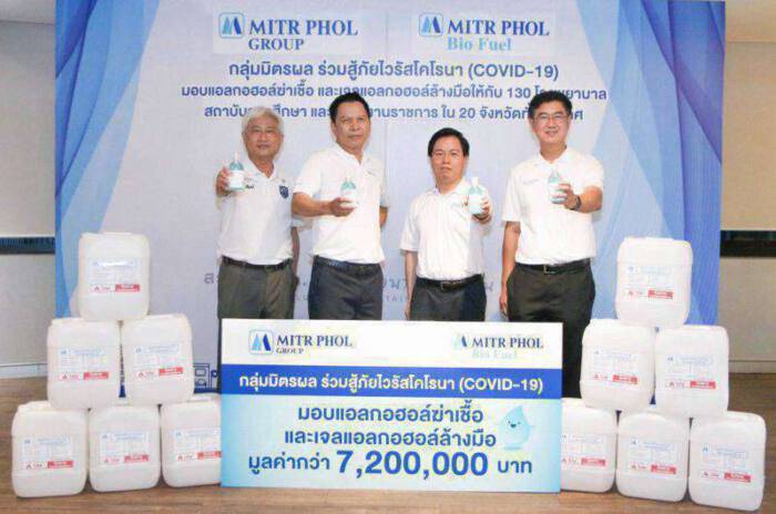 18 มีนาคม 2563 – กลุ่มมิตรผล มอบแอลกอฮอล์ฆ่าเชื้อที่มาจากกระบวนการผลิตเอทานอลจากอ้อย เพื่อใช้ในการฆ่าเชื้อโรค ทำความสะอาดของใช้และสถานที่ และเจลแอลกอฮอล์ทำความสะอาดมือจากโมลาส ภายใต้แบรนด์ “ชื่นใจ บาย มิตรผล” ให้แก่โรงพยาบาล สถาบันการศึกษา และหน่วยงานราชการใน 20 จังหวัดทั่วประเทศไทย นอก จากนี้ยังมอบแอลกอฮอล์ฆ่าเชื้ออีก 1 แสนลิตรให้แก่กรมสรรพสามิต รวมมูลค่ากว่า 7.2 ล้านบาท เพื่อร่วมสู้ภัยในสถานการณ์การแพร่ระบาดของเชื้อไวรัสโคโรนา (COVID-19) ซึ่งปัจจุบันพบผู้ติดเชื้อและผู้ป่วยจำนวนมากในหลายประเทศทั่วโลกรวมถึงประเทศไทย