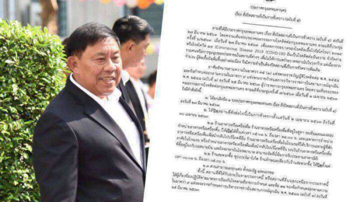 ประกาศกรุงเทพมหานคร เรื่องสั่งปิดสถานที่เป็นการชั่วคราว ฉบับที่ 5 ลงนามโดย พล.ต.อ.อัศวิน ขวัญเมือง ผู้ว่าราชการ ตามข้อ 2 สั่งให้ปิดสถานที่ดังต่อไปนี้ เป็นการชั่วคราว ตั้งแต่วันที่ 2 เมษายน 2563 จนถึง วันที่ 30 เมษายน 2563