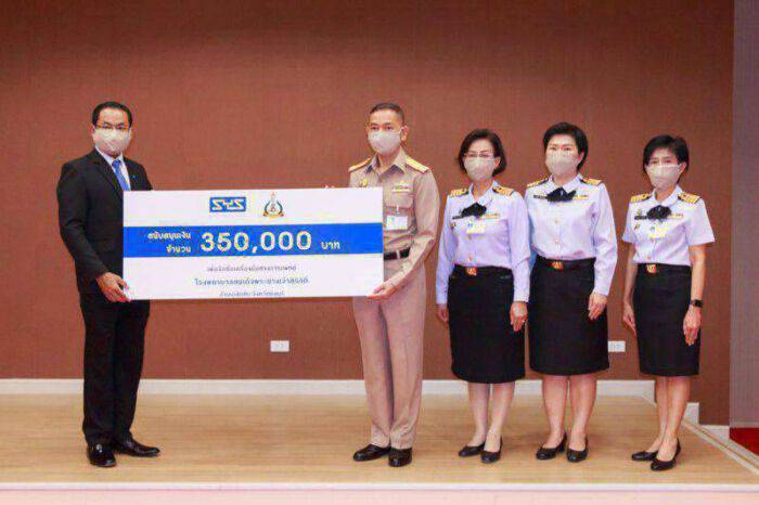 ดร.เภา บุญเยี่ยม (ซ้ายมือ) ผู้จัดการ-สายงานรัฐกิจและชุมชนสัมพันธ์ บริษัท เหล็กสยามยามาโตะ จำกัด หรือ SYS เข้ามอบเงินสนับสนุนจำนวน 350,000 บาท (สามแสนห้าหมื่นบาทถ้วน) เพื่อจัดซื้อเครื่องมือทางการแพทย์ ให้กับพลเรือตรี เกิดศักดิ์ วีระโยธิน ผู้อำนวยการโรงพยาบาลสมเด็จพระนางเจ้าสิริกิติ์ กรมแพทย์ทหารเรือ ณ โรงพยาบาลสมเด็จพระนางเจ้าสิริกิติ์ อ.สัตหีบ จ.ชลบุรี เมื่อวันที่ 3 เมษายน ที่ผ่านมา
