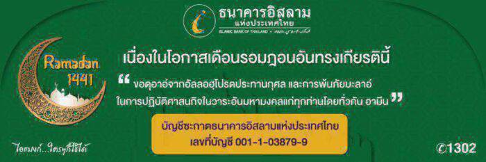 เนื่องในโอกาสเดือนรอมฎอนอันทรงเกียรติ เดือนแห่งการแบ่งปัน เดือนแห่งการสะสมความดี ธนาคารจึงขอเชิญชวนพี่น้องชาวไทยมุสลิมทุกท่านที่ครอบครองทรัพย์สินตามพิกัดและครบรอบ1 ปี จันทรคติ ชำระซะกาตผ่านบัญชีซะกาตของธนาคาร เลขที่บัญชี 001-1-03879-9 สอบถามรายละเอียดเพิ่มเติมที่ Ibank Call Center 1302