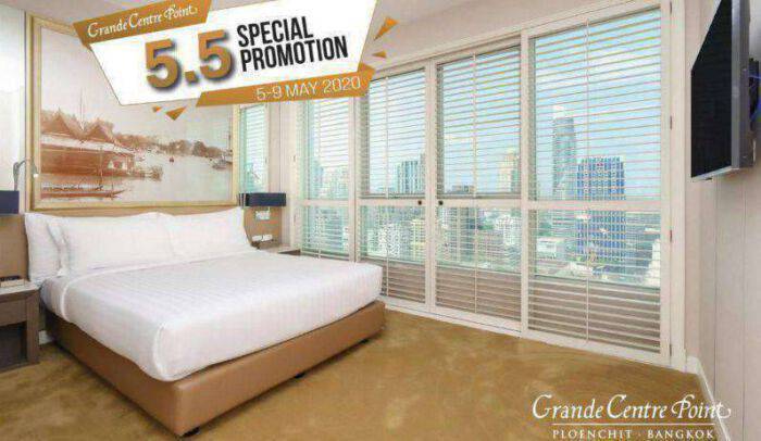 กลุ่มโรงแรม แกรนด์ เซนเตอร์ พอยต์ มอบทางเลือกสำหรับวันพักผ่อนให้คุณด้วยบัตรกำนัลห้องพักโรงแรมใจกลางกรุงเทพฯ และเมืองพัทยา ในราคาสุดพิเศษ ให้คุณเก็บไว้ใช้ได้ยาวนานถึงเดือนธันวาคม 2563 ด้วยโปรโมชั่นห้องพักราคาพิเศษสำหรับโรงแรมในเครือทั้ง 5 แห่ง “โปรโมชั่น 5.5 Super Sales” เปิดจำหน่าย 5 วันเท่านั้น!!! ตั้งแต่วันที่ 5 – 9 พฤษภาคม 2563 สามารถเข้าพักได้ทุกวันตั้งแต่วันที่ 1 มิถุนายน – 23 ธันวาคม 2563