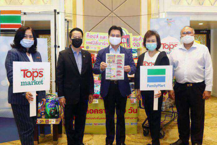 นายจุรินทร์ ลักษณวิศิษฎ์ รองนายกรัฐมนตรีและรัฐมนตรีว่าการกระทรวงพาณิชย์ ร่วมกับ นางสาวภัทรพร เพ็ญประพัฒน์ และ นางพัชรี พรอนันต์รัตน์ ผู้บริหาร เซ็นทรัล ฟู้ด รีเทล กรุ๊ป ร่วมแถลงข่าวความร่วมมือระหว่างท็อปส์ และ แฟมิลี่มาร์ท ผนึกกำลัง กระทรวงพาณิชย์ คิกออฟแคมเปญ ลดราคาช่วยประชาชน ล็อต 2 ภายใต้ภารกิจร่วมกันเพื่อลดภาระค่าครองชีพให้กับพี่น้องประชาชนคนไทยทั่วทั้งประเทศฝ่าวิกฤติโควิด-19 โดยมี บุณยฤทธิ์ กัลยาณมิตร และ ประโยชน์ เพ็ญสุต ร่วมงานด้วย ณ สำนักงานปลัดกระทรวงพาณิชย์ เมื่อวันก่อน