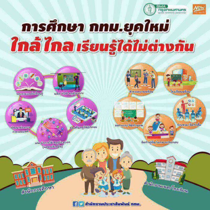 นายณัฐพงศ์ ดิษยบุตร ผู้อำนวยการสำนักการศึกษา กทม. กล่าวถึงการเตรียมความพร้อมการจัดการเรียนการสอนรองรับการเปิดภาคเรียนที่ 1/2563 ว่า สำนักการศึกษา ได้เพิ่มความเข้มข้นมาตรการเฝ้าระวังและป้องกันการแพร่ระบาดโรคติดเชื้อไวรัสโคโรนา 2019 (โควิด-19) เพื่อป้องกันการแพร่ระบาดในกลุ่มครูและบุคลากรทางการศึกษา รวมถึงเด็กนักเรียนในสถานศึกษาสังกัด กทม. โดยจัดให้มีคณะกรรมการพิจารณามาตรการป้องกันการแพร่ระบาดของโรคโควิด-19 ในสถานศึกษา ซึ่งขณะนี้อยู่ระหว่างการวางแผน กำหนดมาตรการ และจัดกลุ่มเสี่ยง ทั้งผู้ปกครอง นักเรียน ครู และบุคลากรทางการศึกษาให้ทันก่อนเปิดเทอม รวมถึงจัดหาวัสดุอุปกรณ์ป้องกันการแพร่ระบาดของเชื้อโควิด-19 ได้แก่ เครื่องตรวจวัดอุณหภูมิ เจลแอลกอฮอล์ หน้ากากป้องกันใบหน้า (face shield) ให้เพียงพอ และมีมาตรการจัดการเรียนรู้เหลื่อมชั้นเหลื่อมเวลา โดยบริหารแผนการเรียนรู้ตามความพร้อมของผู้เรียนและดำเนินการให้สอดคล้องกับสถานการณ์การแพร่ระบาดของโรคโควิด-19 ขณะเดียวกันได้จัดเตรียมความพร้อมด้านสื่อการเรียนรู้ให้ครอบคลุมสำหรับผู้เรียน ทั้งกลุ่มที่มีความพร้อมในการเรียนออนไลน์และกลุ่มที่ไม่มีความพร้อม โดยรวบรวมข้อมูลแหล่งเรียนรู้ สื่อการเรียนรู้ จัดหมวดหมู่สื่อการเรียนรู้ให้เหมาะสมกับการเรียนรู้ของผู้เรียนแต่ละช่วงวัย และเผยแพร่บนเว็บไซต์สำนักการศึกษา เพื่อให้ครูผู้สอน ผู้เรียน และผู้ปกครอง ใช้เป็นเครื่องมือในการเรียนรู้ รวมทั้งประสานความร่วมมือขอรับการสนับสนุนช่องทางและพื้นที่ในการอัพโหลดวิดีโอและเผยแพร่สื่อออนไลน์จากผู้ให้บริการ เช่น CAT เป็นต้น นอกจากนี้ยังได้คัดเลือกครูต้นแบบ 8 กลุ่มสาระการเรียนรู้ในทุกระดับชั้น เพื่อจัดทำสาระการเรียนรู้และจัดทำวิดีโอการสอน เพื่อเผยแพร่บนเว็บไซต์สำนักการศึกษาและช่องทางออนไลน์ต่าง ๆ ตลอดจนจัดทำคู่มือแนะนำการใช้สื่อ โปรแกรม และแอปพลิเคชันต่าง ๆ เพื่อให้ครูที่ยังขาดทักษะด้านการผลิต การใช้สื่อ มีความรู้ในการใช้สื่อและพัฒนาสื่อการเรียนรู้ได้อย่างมีประสิทธิภาพ