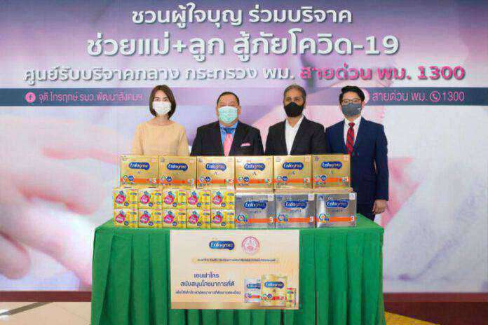 “ในฐานะผู้พัฒนาผลิตภัณฑ์โภชนาการสำหรับแม่และเด็กมาตรฐานระดับโลกที่ได้รับการยอมรับอย่างกว้างขวาง เรามีความยินดีอย่างยิ่งที่ได้เป็นหนึ่งพลังในการบรรเทาความทุกข์ยากลำบากของประชาชนเพื่อสนับสนุนให้เด็กไทยได้รับโภชนาการที่ดีและเหมาะสม และมีพัฒนาการอย่างต่อเนื่อง ทั้งนี้ จากตัวเลขของกระทรวงการพัฒนาสังคมฯ พบว่า ขณะนี้ประเทศไทยมีเด็กที่ต้องการนมซึ่งมีอายุระหว่าง 0-1 ปี จำนวน 350,000 คน อายุระหว่าง 1-2 ปี จำนวน 330,000 คน และอายุระหว่าง 2-3 ปี จำนวน 320,000 คน ซึ่งด้วยข้อจำกัดภายใต้สถานการณ์การแพร่ระบาดของไวรัสโควิด-19 ทำให้แม่ที่มีลูกเล็กเหล่านี้ประสบปัญหาการขาดแคลนนมเพื่อโภชนาการสำหรับลูกน้อย ด้วยเหตุนี้ บริษัทฯ จึงได้ส่งมอบโภชนาการที่ดีอย่างต่อเนื่องสำหรับเด็กอายุตั้งแต่ 1 ปีขึ้นไป ผ่านทางกระทรวงการพัฒนาสังคมและความมั่นคงของมนุษย์ ซึ่งประกอบด้วยนมผงสำหรับเด็ก “เอนฟาโกร เอพลัส ดีเอชเอ พลัส เอ็มเอฟจีเอ็มโปร สูตร 3” “เอนฟาโกร สมาร์ทพลัส สูตร 3” รวมทั้งนมพร้อมดื่ม “เอนฟาโกร ซูพีเรียร์ สูตร 3” รวมจำนวน 140 ลัง สู่แม่ลูกเล็กที่มีความต้องการดังกล่าว”