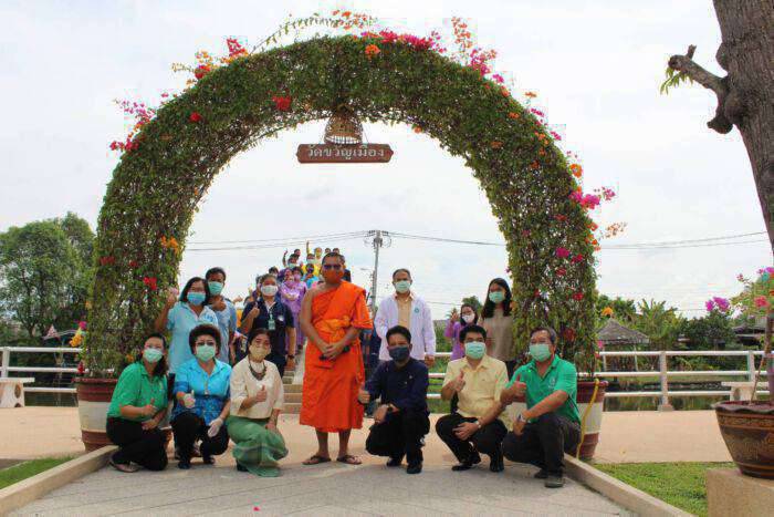 วันที่ 29 พฤษภาคม 2563 ณ วัดขวัญเมือง ต.บางกร่าง อ.เมืองนนทบุรี จ.นนทบุรี นายไกรธวัช ทินโสม นายอำเภอเมืองนนทบุรี จับมือเครือข่ายโดยมี พระใบฎีกาสมบูรณ์ ปริชาโน เจ้าอาวาสวัดขวัญเมือง นางรักใจ กาญจนะวีระ พัฒนาการจังหวัดนนทบุรี นางสาวโสภิดา บุญเนาว์ พัฒนาการอำเภอเมืองนนทบุรี ผู้อำนวยการสำนักพระพุทธศาสนาจังหวัดนนทบุรี นายกองค์การบริหารส่วนตำบลบางกร่าง ผู้อำนวยการโรงเรียนศรีรัตโนภาศ หัวหน้าส่วนราชการระดับอำเภอ กำนัน ผู้ใหญ่บ้าน ผู้นำอช. สมาชิกกองทุนพัฒนาบทบาทสตรี และผู้นำชุมชนอำเภอเมืองนนทบุรี นำทีมเปิด “ศูนย์เรียนรู้เกษตรเชิงพุทธตามหลักปรัชญาของเศรษฐกิจพอเพียง” โดยน้อมนำแนวพระราชดำริของสมเด็จพระกนิษฐาธิราชเจ้า กรมสมเด็จพระเทพรัตนราชสุดาฯ สยามบรมราชกุมารี สู่แผนปฏิบัติการ 90 วัน ปลูกผักสวนครัว เพื่อสร้างความมั่นคงทางอาหาร ของกรมการพัฒนาชุมชน กระทรวงมหาดไทย ร่วมกับจังหวัดนนทบุรี