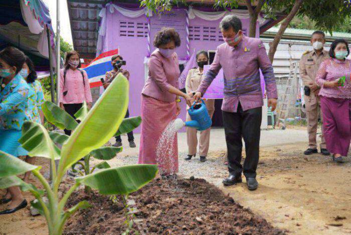 จากนั้น นายสุทธิพงษ์ จุลเจริญ ดร.วันดี กุญชรยาคง จุลเจริญ และ นายชาญนะ เอี่ยมแสง ผู้ว่าราชการจังหวัดนครปฐม ยังได้ร่วมปลูกผักสวนครัวให้แก่ครัวเรือนยากไร้ เพื่อเป็นตัวอย่างให้กับทุกครอบครัวในชุมชน ให้หันมาปลูกผักสวนครัว เพื่อเป็นการลดรายจ่าย และมีพืชผักสวนครัวที่สะอาดปลอดภัยรับประทานกันเองในครัวเรือน