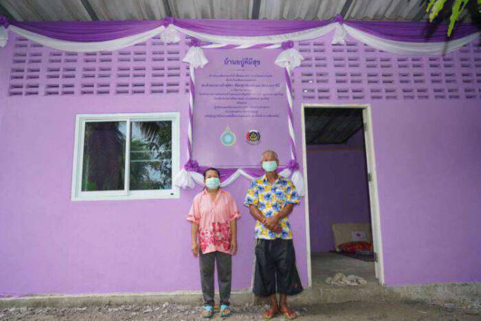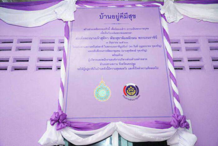 “บ้าน 2 หลังนี้ เป็น 2 หลังแรก ที่ได้มีโอกาสมาสร้างบ้าน เกิดจากแนวคิดของอธิบดีกรมการพัฒนาชุมชน ซึ่งพวกเราได้ปรึกษาหารือกับท่านนายกอบต.ท่าตลาด นายอำเภอสามพราน ว่าจะตั้งใจมุ่งมั่นสร้างบ้านเพื่อมอบให้กับผู้ที่ขาดที่อยู่อาศัย จนเกิดเป็นบ้าน 2 หลังนี้ ซึ่งเป็นความสุขของพวกเราทุกคนที่ได้ร่วมกันทำความดีถวายพระองค์ท่าน เนื่องในวันคล้ายวันพระราชสมภพ ชื่อบ้านนี้ก็ตั้งชื่อง่าย ๆ มีชื่อว่า บ้านอยู่ดีมีสุข และขอคำมั่นจากเจ้าของบ้านว่า จากนี้เป็นต้นไปท่านมีหน้าที่อย่างเดียวเลยคือ ต้องทำความดี และขอให้ทั้งสองครอบครัวอยู่ในบ้านนี้ด้วยความสุขและความร่มเย็น