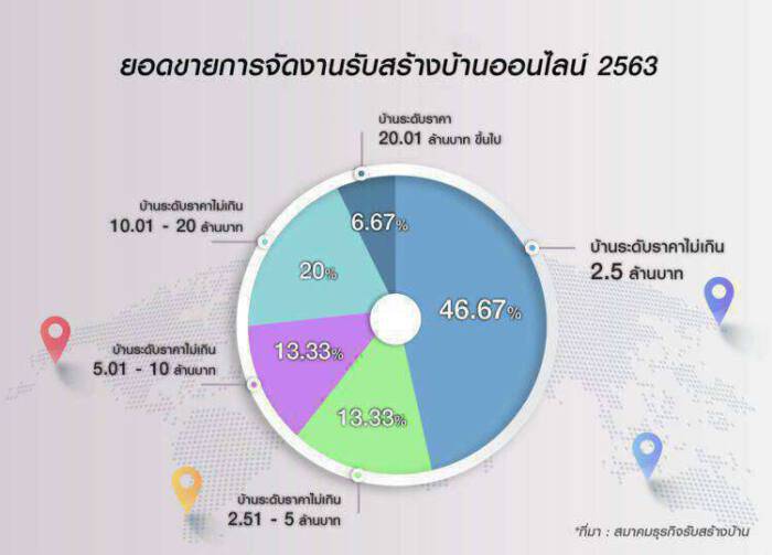 จากยอดขายงานรับสร้างบ้านออนไลน์ตลอด 12 วันของการจัดงาน แบ่งตามระดับราคาบ้านที่ปลูกสร้าง ดังนี้