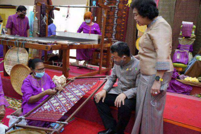 โดยหลังจากพิธีมอบถุงยังชีพเสร็จสิ้นแล้ว อธิบดีกรมการพัฒนาชุมชน พร้อมด้วยประธานสภาสตรีแห่งชาติฯ และคณะได้เยี่ยมชมนิทรรศการผ้าพื้นถิ่นของจังหวัดร้อยเอ็ด ที่ชาวบ้าน และผู้ประกอบการ OTOP นำมาจัดแสดงในงานด้วย
